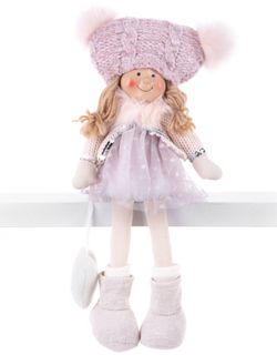 Postavička MagicHome Vianoce, Dievčatko s vysokým klobúkom, látkové, ružovo-sivé, 17x12x54 cm