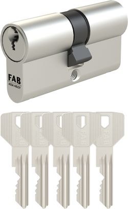 Cylindrická vložka FAB je určená na dvere vyžadujúce trvale vysokú bezpečnosť zaistenia. Vhodné napríklad na vchodové dvere bytového domu, vstupné dvere, kancelárske dvere, školské dvere či na priemyselné objekty. Obsahuje 5 stavítkový uzamykací systém. Ochrana proti odvŕtaniu telesa. Patentované paracentrické profily. Materiál: mosadz, povrchová úprava matný nikel. Štandardne dodávané s 5 predĺženými oceľovými kľúčmi. Rozmer: 40+40 mm.